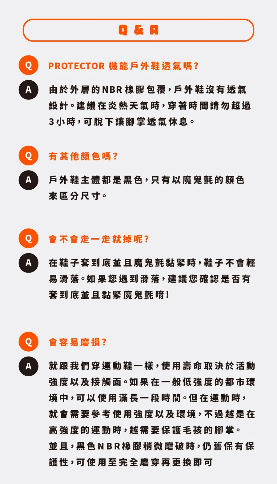 材質:魔鬼氈、40%聚乙烯、15%尼龍、10%聚酯纖維、10%玻璃纖維、5%彈性纖維、20%NBR橡膠